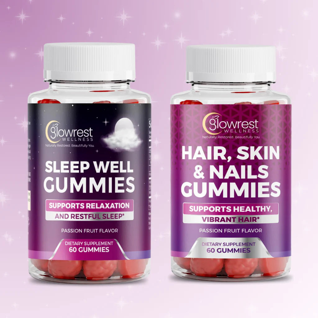 Take Sleep Gummies 30 minutes before bed. Glow Gummies can be taken anytime.